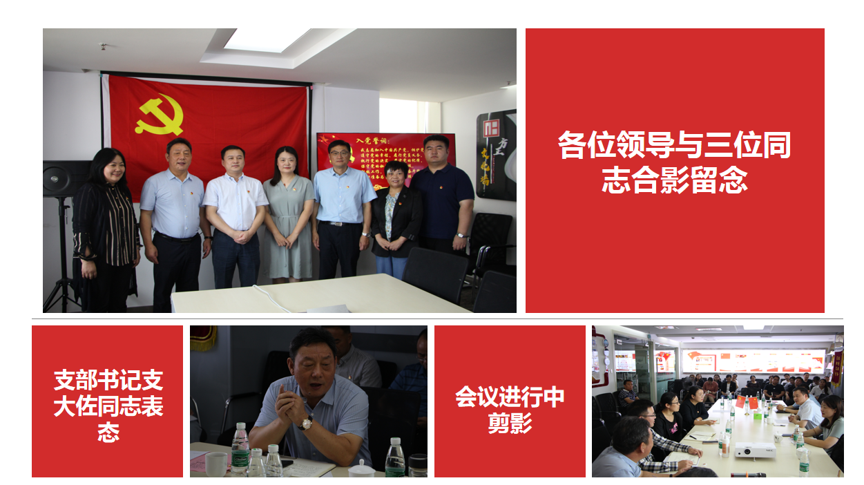 會議首先由閆洪珍、胡穎、支流三位同志從對黨的認識、入黨動機、現(xiàn)實表現(xiàn)等方面向支部大會進行匯報,支部其他黨員對三位同志的整體情況進行了討論并表決通過。支部書記支大佐同志宣布閆洪珍、支流、胡穎光榮成為中國共產(chǎn)黨預備黨員,并為其佩戴黨徽。
